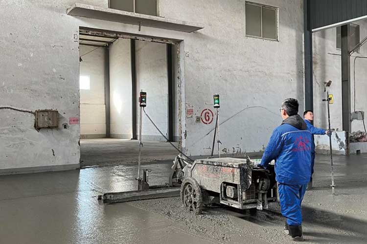 12、激光測控系統(tǒng)自動控制標高:地坪頂面設(shè)計標高由激光機電腦自動控制,可保證非常高的地面平整度,并可直接在混凝土層上實現(xiàn)精準找平,地面平整度不受施工模板震動影響,中間不用支模,減少人工材料投入,減少施工程序,加快施工進度。