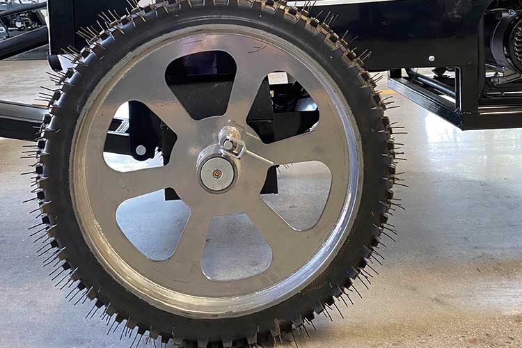 7、?雙輪獨立移動,靈活方便,通過電驅(qū)動兩輪行走系統(tǒng),使得輪子可獨立移動,與整平頭互不影響,采用手動控制輪子的前進、后退、轉(zhuǎn)向及行進速度,移動非常方便。